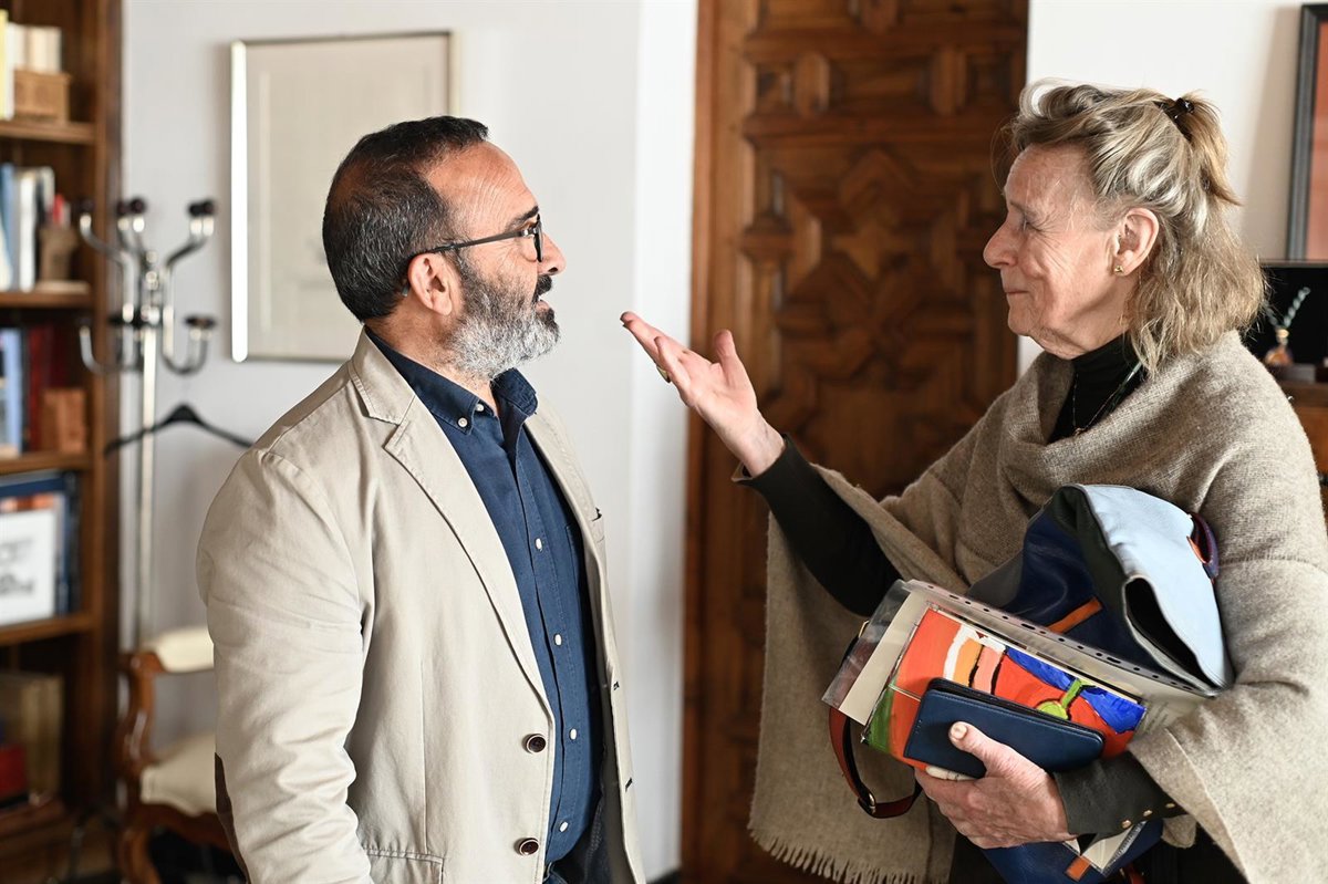 El presidente de la Diputación de Cáceres, Miguel Ángel Morales, con la artista Lucia Beijlsmit que promueve un proyecto artístico en Salorino (Cáceres) enfocado en las personas ciegas - DIPUTACIÓN DE CÁCERES