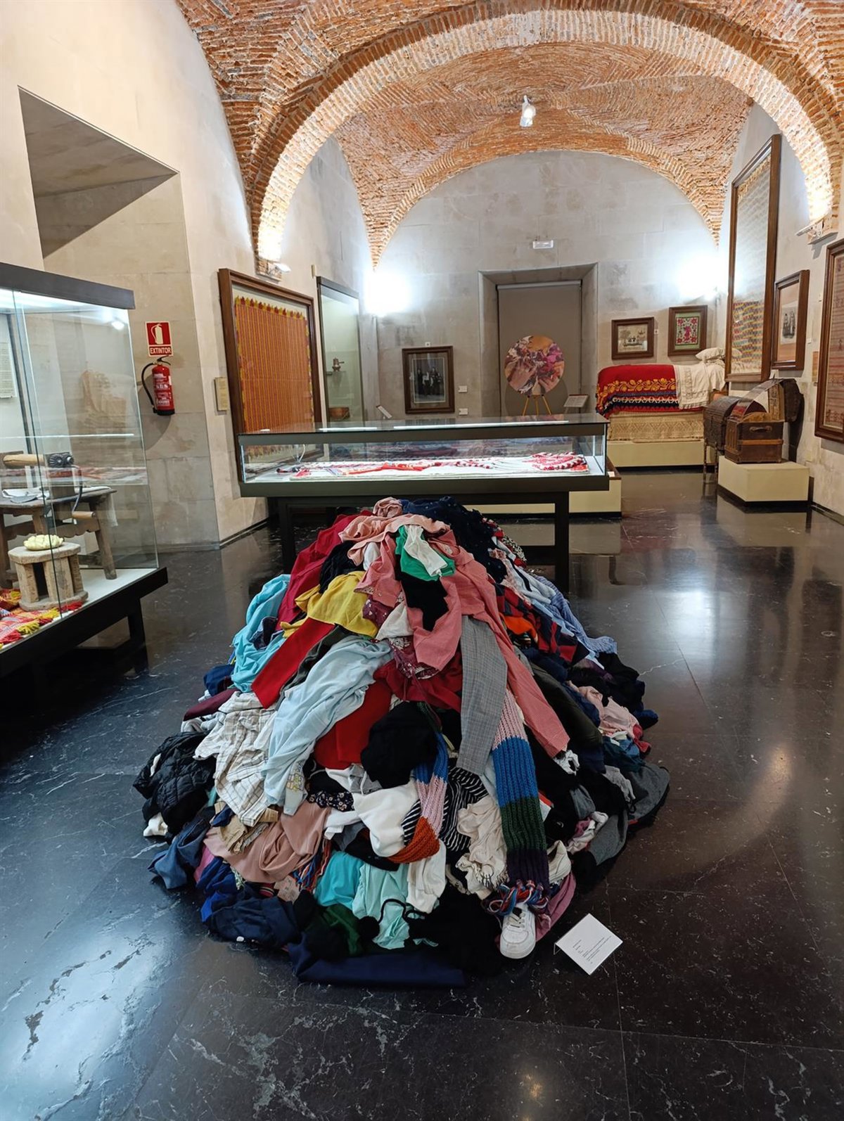 En palabras del comisario de esta exposición, Julio Vázquez, "la intervención sobre la colección del Museo Etnográfico Textil Pérez-Enciso de Plasencia actúa como filtro legítimo para postular una antropología crítica versada en identidad, consumismo y sus consecuencias ecosociales desde la perspectiva de género".