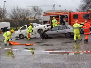 Durante esta jornada, se ha podido comprobar de primera mano la manera en la que bomberos y Cruz Roja se coordinan para actuar ante un accidente de tráfico por alcance de un vehículo sobre otro.