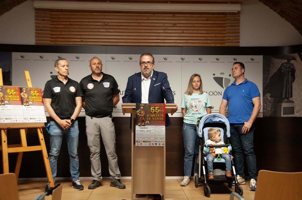 El diputado de Sepei de la Diputación de Cáceres, Alberto Ortega, ha acompañado a Tamara Blanco y a Marcos Lázaro, presidente de Bomberos Solidarios, en la presentación de esta jornada, que se celebrará en Casar de Cáceres, lugar del que partirá la ruta solidaria.