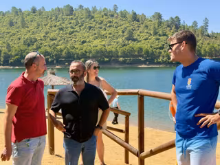 El presidente de la Diputación de Cáceres, Miguel Ángel Morales, ha visitado junto al alcalde de Cañamero, David Peña, la playa 'Cancho del Fresno' para estudiar una ampliación de los servicios que ofrece estas instalaciones que desde 2023 viene renovando su Bandera Azul como reconocimiento a la calidad de sus aguas.