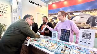 El diputado de Reto Demográfico y Espacios Naturales Protegidos, Javier Díaz Cieza, en el stando de la Diputación de Cáceres en Fehispor - DIPUTACIÓN DE CÁCERES
