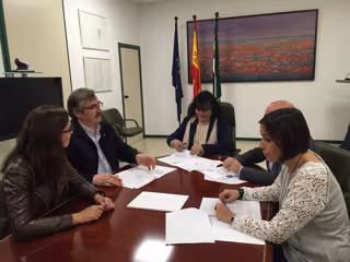 La diputada de Sociedad Agropecuaria de la Diputación de Cáceres, Angélica García, ha asistido este martes a la reunión mantenida con el director general de Agricultura y Ganadería de la Junta de Extremadura, Antonio Cabezas, el diputado de Desarrollo Sostenible de la Diputación de Badajoz, Francisco José Farrona, la directora del Centro de Investigaciones Ciéntíficas y Tecnológicas, Carmen González, y la presidenta de la Mancomunidad de Sierra de Gata, Rocío Pérez.