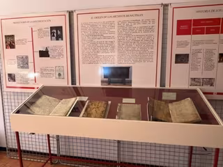Junto a estos documentos históricos, se visualizan una serie de paneles explicativos donde se da a conocer la historia de los ayuntamientos, de los archivos municipales, las estadísticas de los documentos organizados, gráficos, mapas, fotografías, etc.