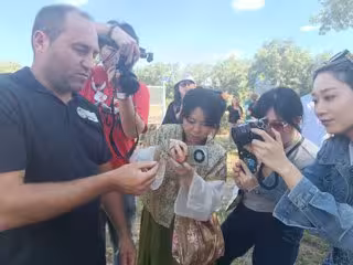 La delegación de influencers de China fotografía una rama de olivo - DIPUTACIÓN DE CÁCERES