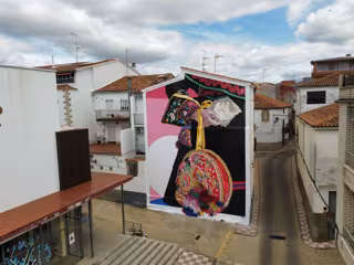Esta séptima edición de 'Muro crítico' se ha ampliado a diez municipios donde se están realizando tres murales en cada uno de ellos por parte de artistas nacionales e internacionales, que plasmarán su particular visión de temas tan diferentes como la guerra de Ucrania, la revuelta de los yunteros, el castúo o la rotura de la presa de agua en Valverde de la Vera.