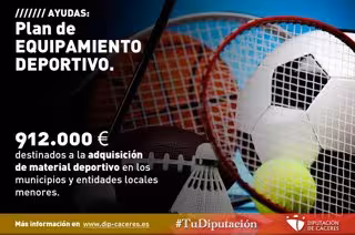 Los municipios de Cáceres ya pueden solicitar las ayudas de la Diputación Provincial para la adquisición de material deportivo dentro de un plan de equipamiento que ha puesto en marcha la institución y al que ha consignado un total de 912.000 euros.