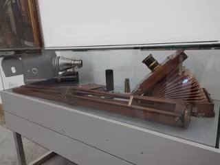 Concretamente, se muestra una serie de objetos de fabricación británica de la segunda mitad del siglo XIX como una cámara de fotos de fuelle y una linterna mágica, aparato óptico precursor del cinematógrafo.