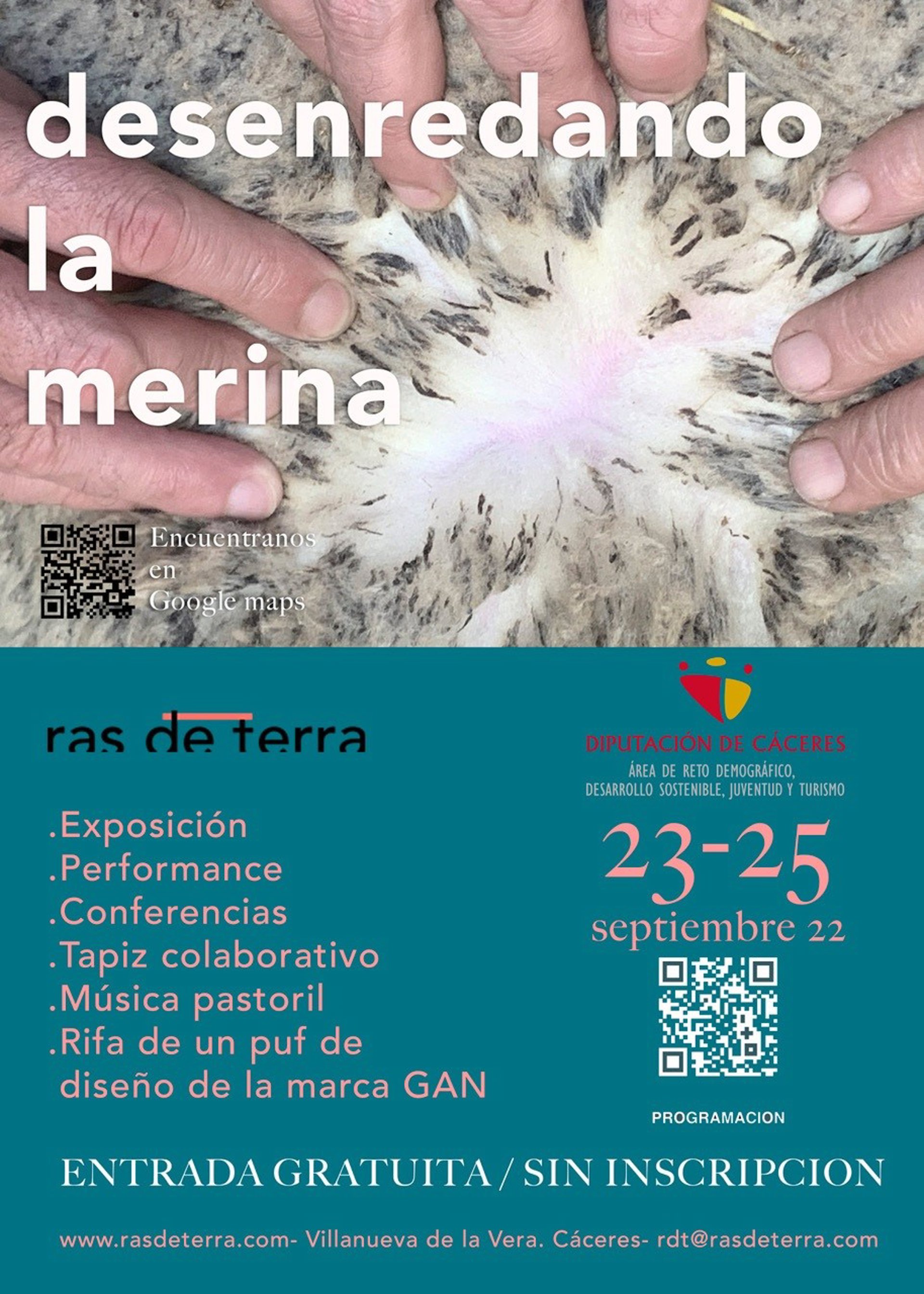 Tendrá lugar del 23 al 25 de septiembre en el Centro Cultural Ras de Terra en Villanueva de la Vera, en el primer aniversario de este espacio. Allí se desarrolla este fin de semana este proyecto artístico, social y medioambiental que tiene como principal objetivo concienciar a la ciudadanía sobre la situación de la lana merina en Extremadura y España, y debatir sus limitaciones para aportar soluciones que permitan rentabilizar y hacer más competitivos los productos derivados de esta.