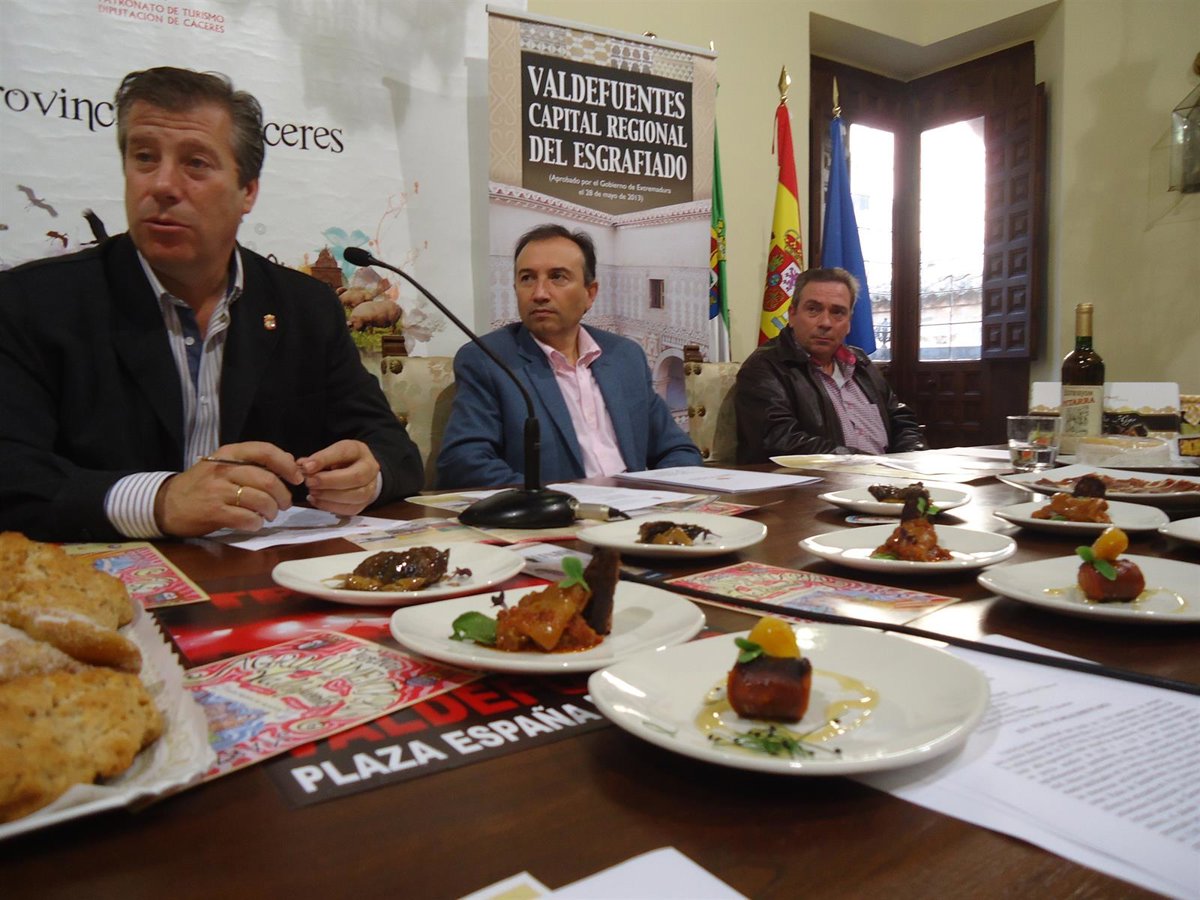 Este miércoles el presidente de la institución provincial, Laureano León, acompañado por el alcalde de Valdefuentes, Álvaro Arias, y por el gerente de las bodegas de la localidad 'Hnos. Pérez Palomino', Juan Pedro Pérez, ha presentado la programación para la décimo sexta edición de esta feria de la que ha considerado como una cita "obligada".
