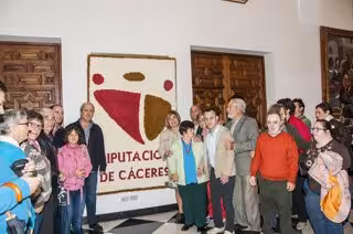 Los usuarios de la Asociación en favor de las Personas con Discapacidad Intelectual de Plasencia y Comarcas del Norte de Cáceres (Placeat) han obsequiado este martes, día 18, a la Diputación de Cáceres con un tapiz elaborado en su taller de confección.