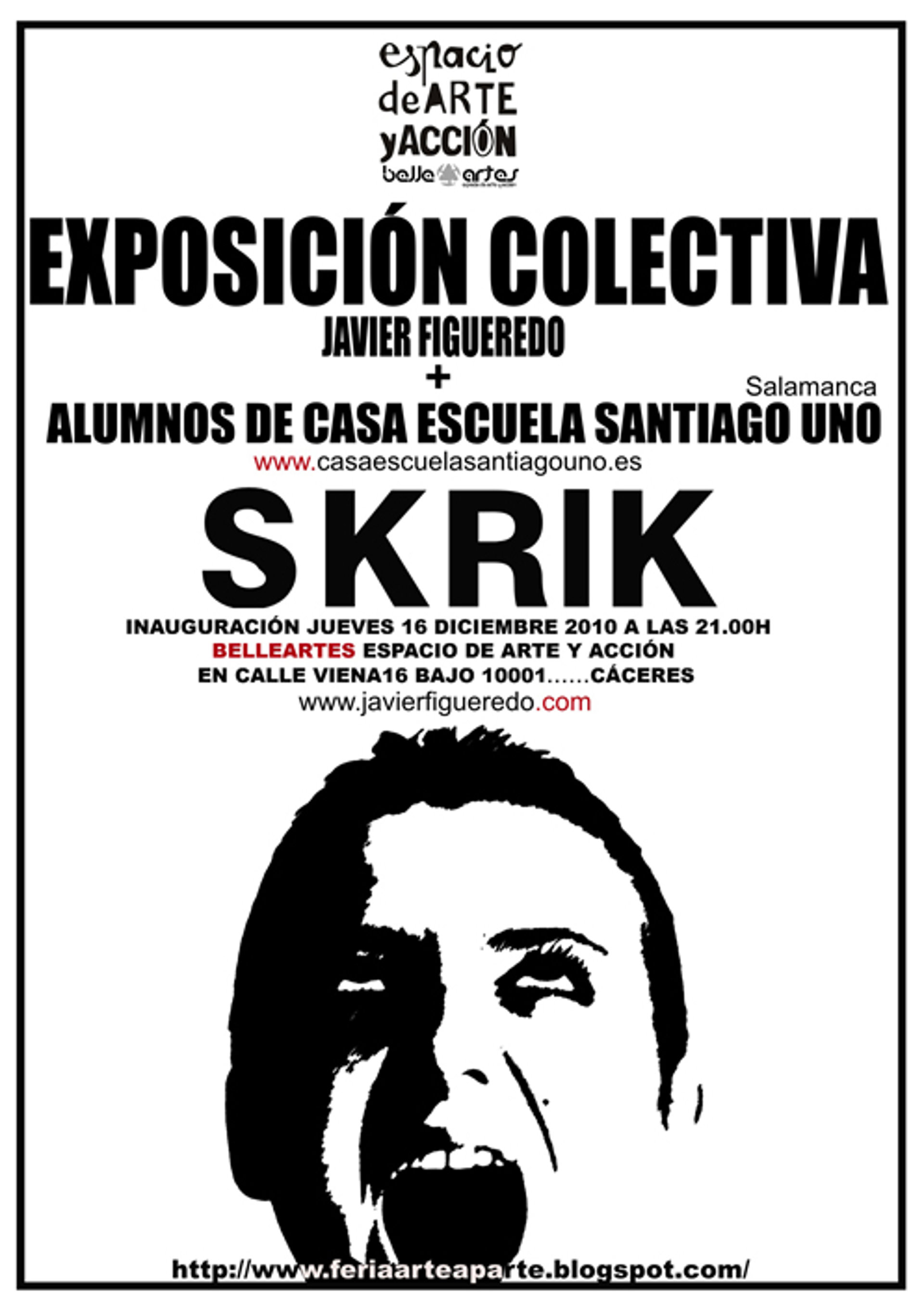 El artista extremeño Javier Figueredo presentará este jueves, 16 de diciembre, en Cáceres su proyecto 'Skrik', realizado en colaboración con alumnos con diferentes problemáticas sociales y en el que se dan cita la pintura, fotografía y video instalación para mostrar la "lucha" de los menores en riesgo de exclusión social.