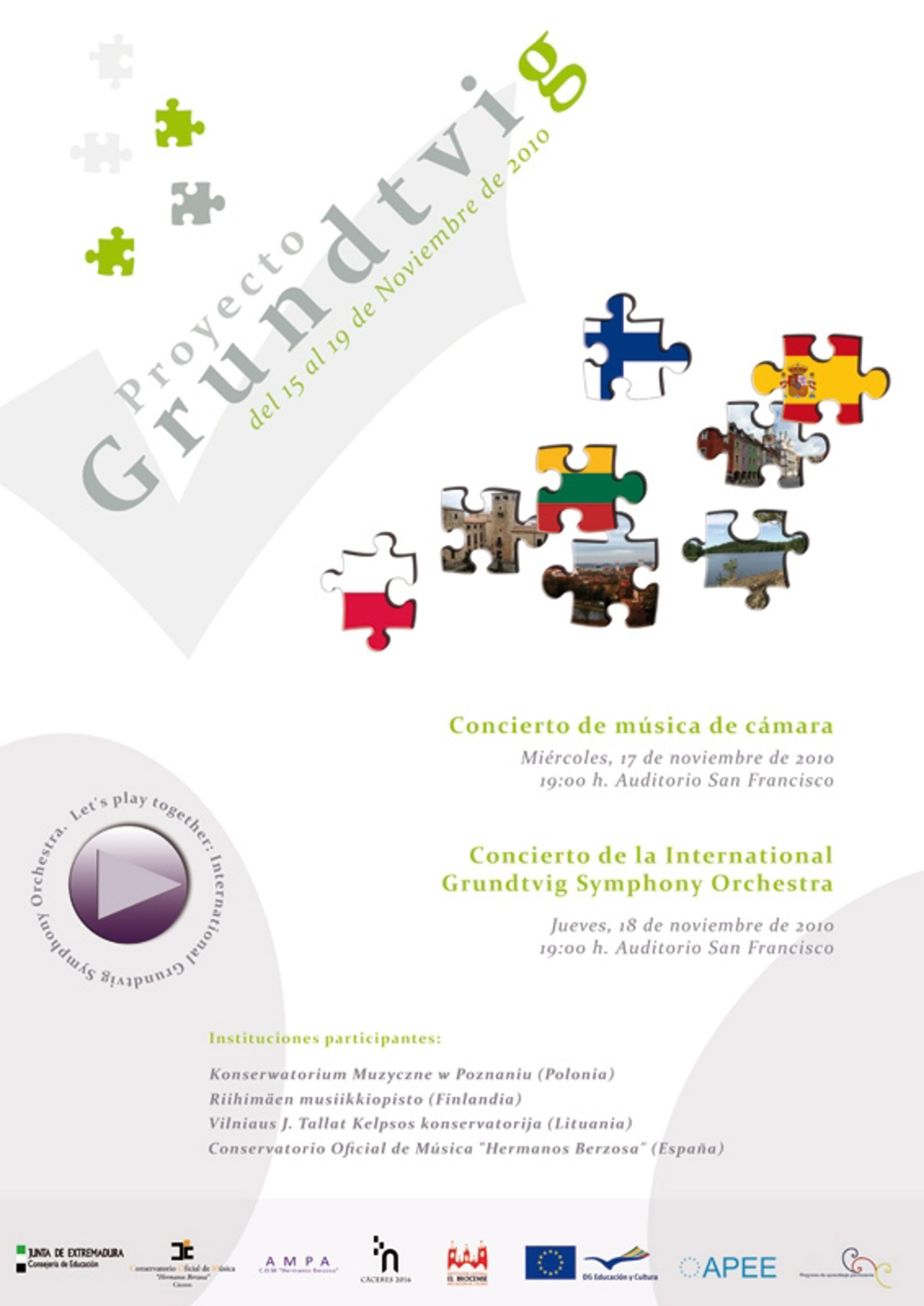 El Conservatorio Oficial de Música 'Hermanos Berzosa' de Cáceres ofrecerá este miércoles, día 17, y el jueves, día 18, dos conciertos enmarcados en el proyecto Grundtvig: Let's play together. International Grundtvig Symphony Orquestra.