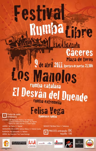 El Festival Rumbalibre celebrará su edición de 2011 en Cáceres, donde se podrá disfrutar de la música del grupo extremeño 'El Desván del Duende', la rumba catalana de 'Los Manolos' y la voz de la cantaora 'Felisa Vega'.