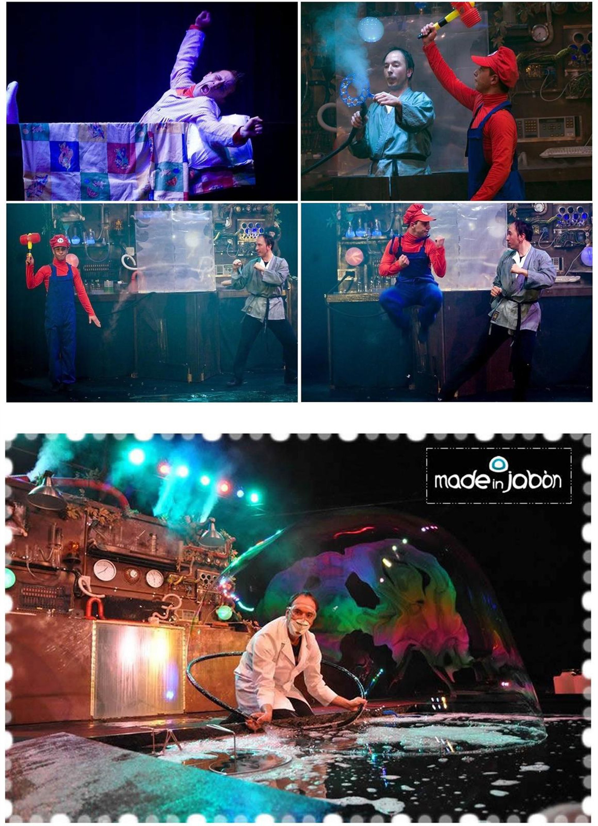 Bubble Bros, 'El Laboratorio Secreto', une humor, teatro, magia y fantasía a cargo de la compañía Made in Jabón, que cuenta con el Récord World Guinness 2009 por la elaboración de la cadena de pompas de jabón mas grande del mundo y ha obtenido el premio Max al mejor espectáculo infantil en el 2010, según informa Caja de Extremadura en nota de prensa.