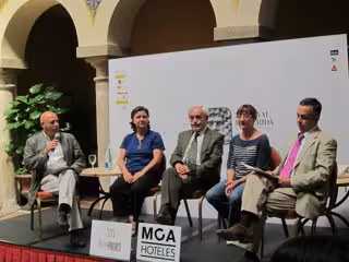 El 'Ciclo Ideas' ha sido presentado este viernes, 8 de julio, en una rueda de prensa a la que han asistido Santiago López, las directoras del Festival de Mérida, Blanca Portillo y Chusa Martín, el director general de Promoción Cultural de la Junta de Extremadura, Javier Alonso de la Torre, y el delegado de Cultura del Ayuntamiento de Mérida, Ángel Pelayo.