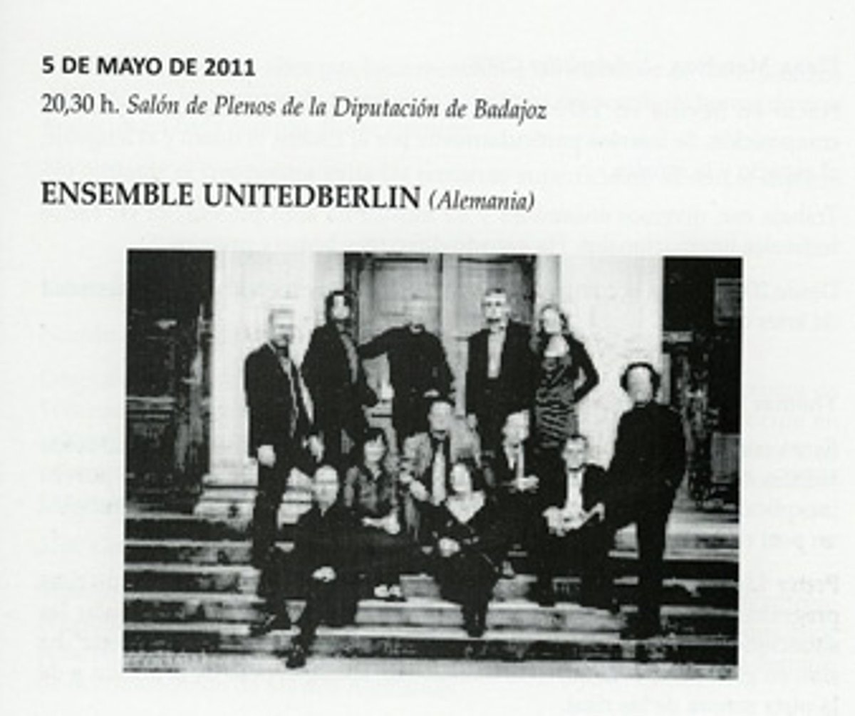 La formación alemana 'Ensemble United Berlin' inaugura el IV Ciclo de Música Contemporánea que se celebra en Badajoz del 5 al 11 de mayo y organiza el Conservatorio Superior 'Bonifacio Gil'.
