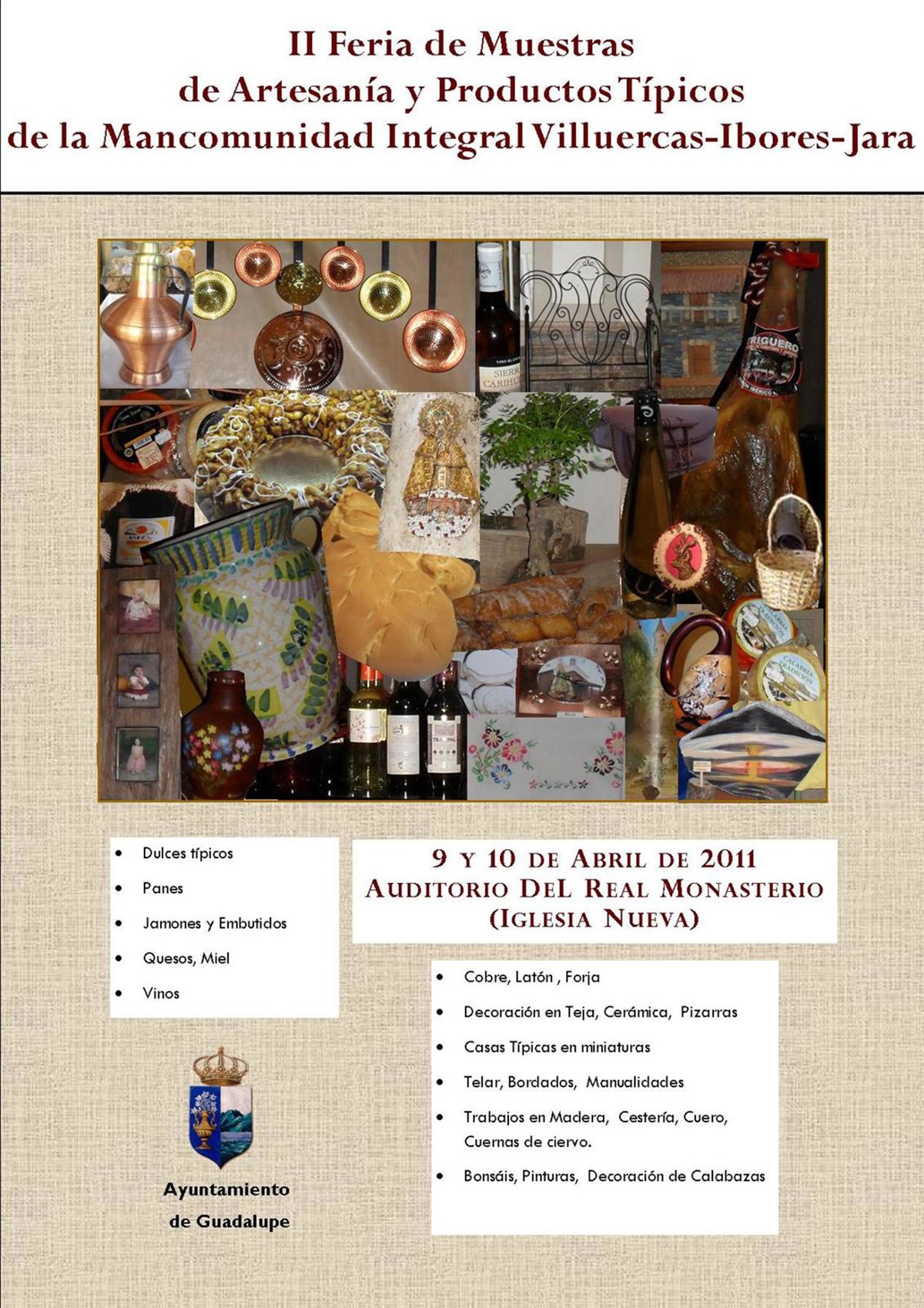 La II Feria de Muestras de Artesanía y Productos Típicos de la Mancomunidad Integral Villuercas-Ibores-Jara, en la provincia de Cáceres, abre sus puertas este sábado, 9 de abril, en el Auditorio del Real Monasterio de Guadalupe.