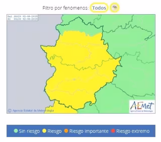 De este modo, según los datos facilitados por la Agencia Estatal de Meteorología (Aemet), la alerta permanecerá activa desde las 18,00 horas hasta las 23,00 horas en las comarcas cacereñas, y finalizará a las 21,00 horas en la provincia pacense ante la previsión de lluvias localmente fuertes con posibilidad de vientos también localmente fuertes y/o granizo inferior a 2 centímetros.
