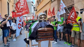 La protesta ha incluido una "performance" de un entierro con el traslado de un féretro, en cuya parte superior han colocado un traje y un casco de bomberos, desde Juan Carlos I a las puertas de la diputación pacense en Felipe Checa y oficiado por Antonio Esteban, de USO, caracterizado como un obispo y quien ha lamentado que, seis años después, se han visto "nuevamente obligados" a volver a manifestarse ante las puertas de la diputación ante la "dejadez" de su presidente, Miguel Ángel Gallardo.