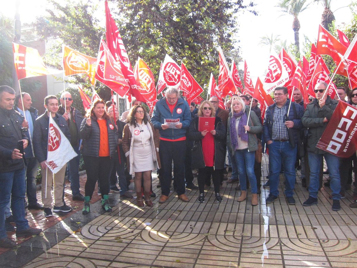 Bajo el lema 'No al despido por enfermar', en la concentración se han se han coreado voces como "¡Qué viva la lucha de la clase obrera!" y "Esta reforma la vamos a quitar" y ha contado con la presencia de las secretarias generales de dichos sindicatos en la región, Encarna Chacón y Patrocinio Sánchez, respectivamente.