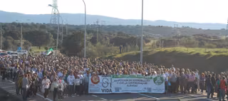 La marcha ha discurrido sin incidentes desde las puertas de la Central Nuclear de Almaraz hasta el ayuntamiento de esta localidad cacereña, donde una de las integrantes de la Plataforma Ciudadana Vida, creada para promover la ampliación de la central ha leído un manifiesto desde su balcón.