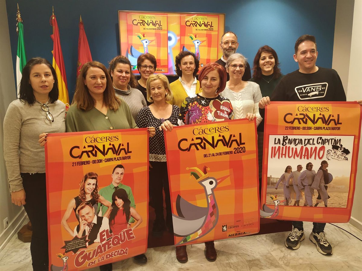 Unas 500 personas pertenecientes a once grupos participarán el sábado día 22 en el desfile del Carnaval de Cáceres, que comenzará con la tradicional Fiesta de las Lavanderas y la quema del pelele el viernes, en la Plaza Mayor. Allí se instalará una carpa transparente que aglutina la programación de concursos y conciertos que se han organizado como el de El Guateque de la Década, o La Banda del Capitán Inhumano, entre otros.