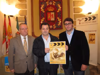 El concejal de Turismo de Cáceres, Jorge Suárez; el presidente de Unicef en Extremadura, Andrés Rico, y el director de Extrema'doc, Alberto Durán han adelantado este jueves algunos de los contenidos de este certamen que albergará un reconocimiento al director portugués Sergio Trefaut por su trayectoria y proyección documental.