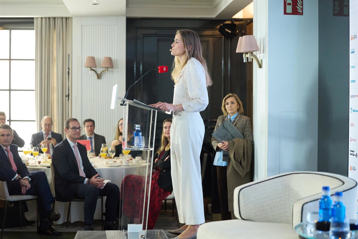 La vicepresidenta tercera del Gobierno y ministra para la Transición Ecológica y el Reto Demográfico, Sara Aagesen, interviene durante un desayuno informativo de Europa Press, en el Hotel Rosewood Villa Magna, a 21 de febrero de 2025, en Madrid (España). - Jesús Hellín - Europa Press