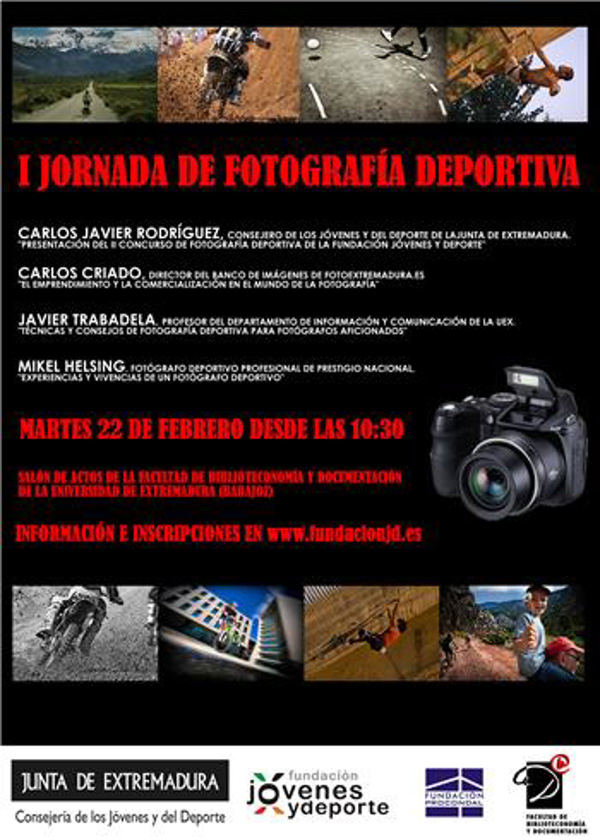 El plazo de inscripción en la I Jornada de Fotografía Deportiva que se celebrará el próximo 22 de febrero en Badajoz permanece abierto para todos los interesados.
