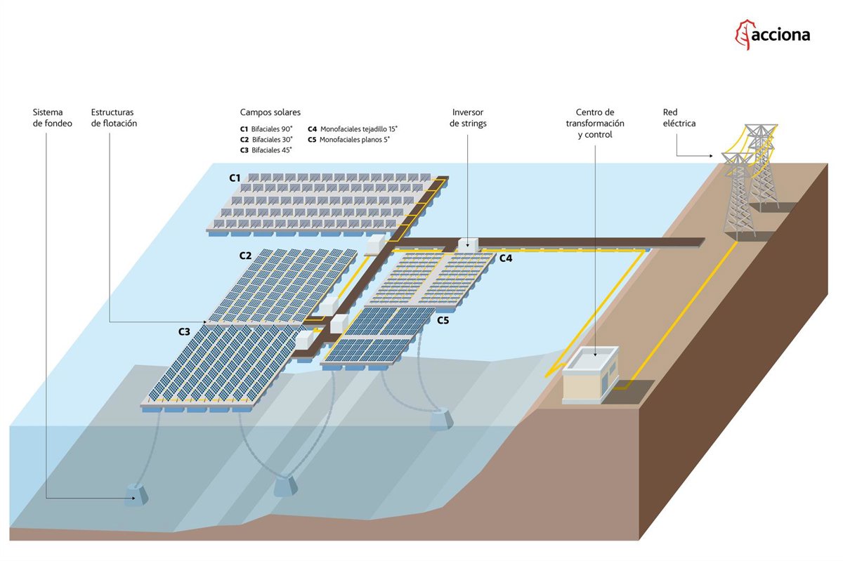 Acciona aborda este proyecto ante el hecho de que las plantas flotantes constituyen una opción cada vez más empleada en distintas regiones del mundo con escasez de terreno o con condiciones geográficas idóneas para ello.