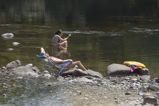 Archivo - Dos personas se remojan en la orilla de un río. - Rosa Veiga - Europa Press - Archivo
