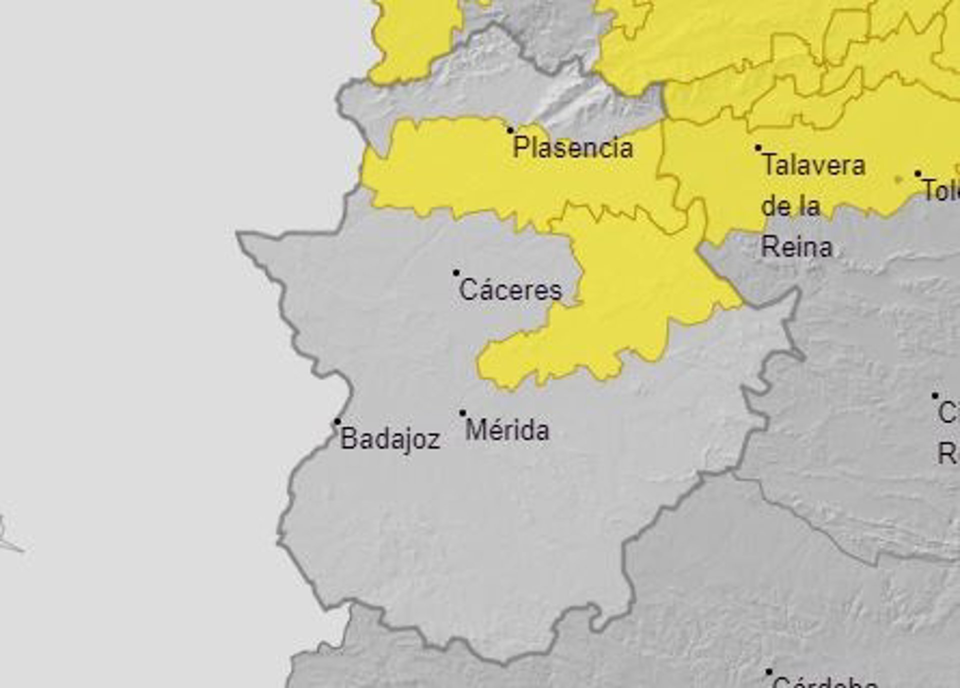 En concreto, los avisos afectan a las zonas de Montánchez y Villuercas y a Tajo y Alagón, y permanecerán activos entre las 17,00 y las 22,00 horas.