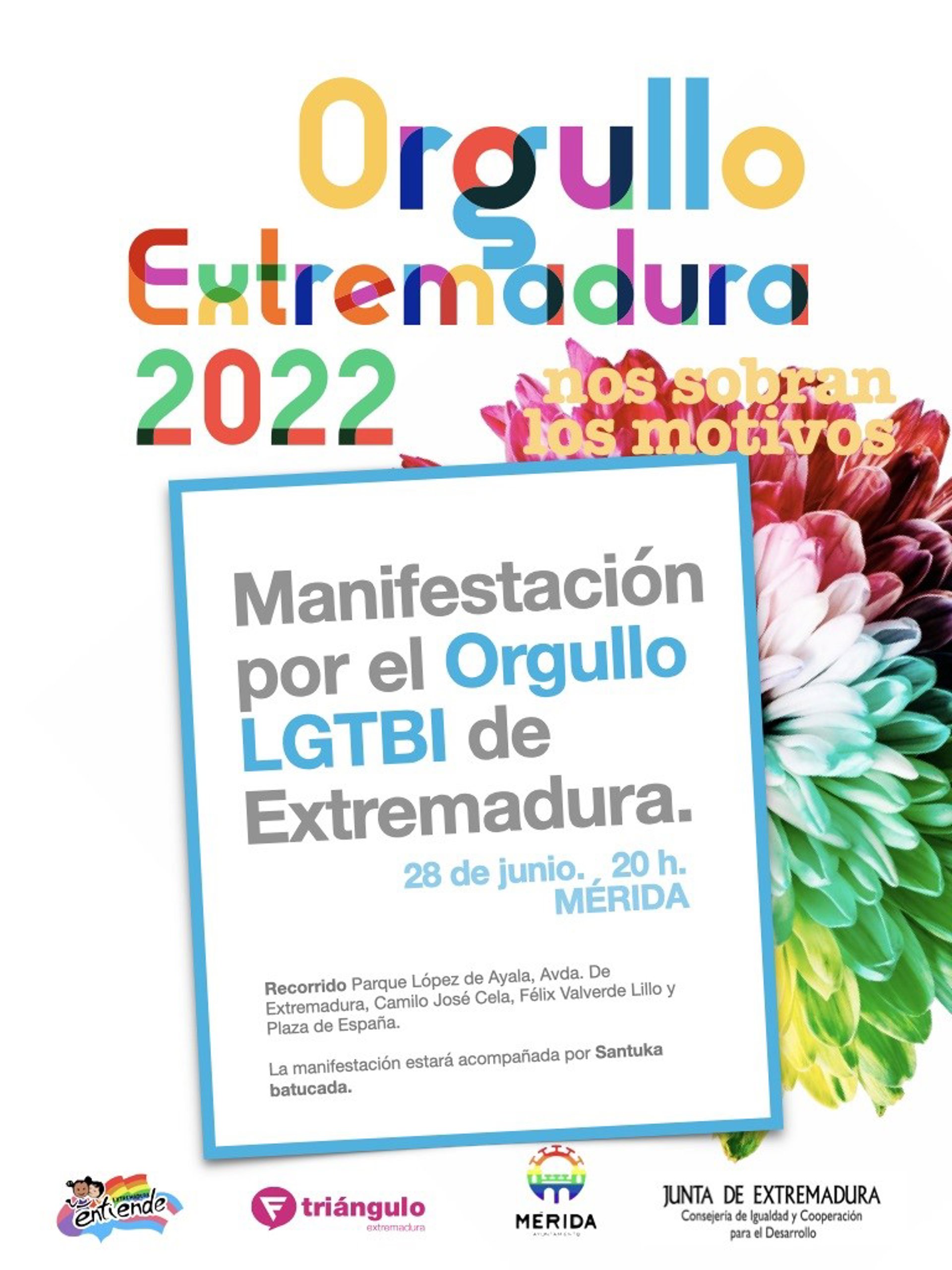 Los actos que, con motivo de la celebración del Orgullo 2022 bajo el lema 'Nos sobran los motivos', se están desarrollando desde la pasada semana en Mérida, continúan este lunes y martes, días 27 y 28, para culminar con la Manifestación por el Orgullo LGTBI.