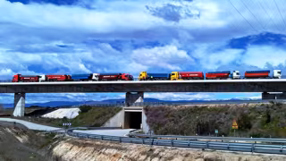 Las hileras de camiones se han dispuesto de modo que las configuraciones de carga fuesen simétricas respecto del eje del tablero, con el fin de representar los estados de carga significativos para el uso futuro de los viaductos, informa en nota de prensa ADIF.