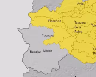Los avisos se activarán entre las 00,00 y las 20,00 horas de este sábado en el norte de Cáceres, Tajo y Alagón, Montánchez y Villuercas, en la provincia de Cáceres, y en la Siberia extremeña, en la de Badajoz.