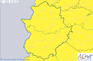 La Agencia Estatal de Meteorología (Aemet) ha activado avisos de nivel amarillo ante la posibilidad de que se produzcan tormentas en toda la comunidad autónoma de Extremadura este lunes, 26 de agosto.
