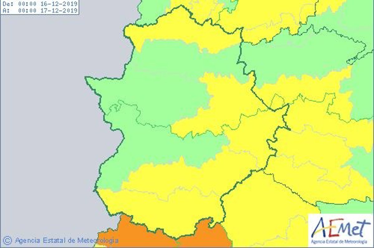 La Agencia Estatal de Meteorología (Aemet) ha activado avisos de nivel amarillo en Extremadura este lunes, 16 de diciembre, ante el riesgo de que se produzcan fuertes rachas de viento en buena parte de la comunidad autónoma así como por lluvias en el norte de Cáceres.