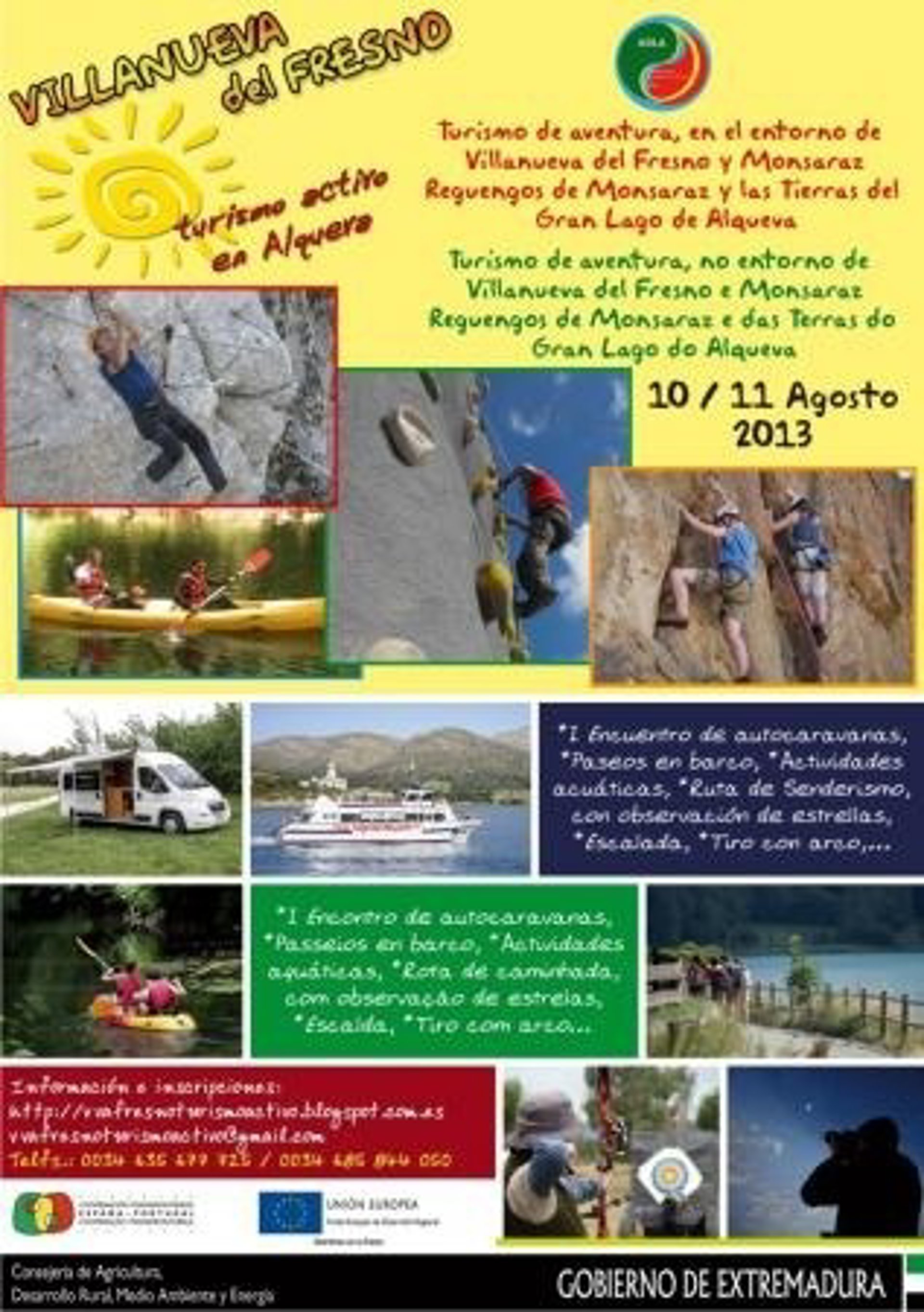 La promoción turística de las localidades del entorno del Gran Lago de Alqueva es el objetivo de las actividades de aventura que la Consejería de Agricultura, Desarrollo Rural, Medio Ambiente y Energía en el municipio pacense de Villanueva del Fresno, y en Monsaraz-Reguengos de Monsaraz, de Portugal, durante los próximos días 10 y 11 de agosto.