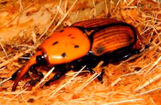 El picudo rojo es un escarabajo originario del sur de Asia que ocasiona "importantes" daños en las palmeras, ya que sus larvas se alimentan "vorazmente" en el interior del tronco y de la corona "hasta llegar a destruirlas".