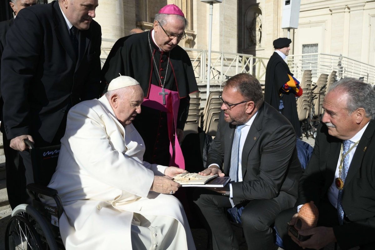 El Papa Francisco y el alcalde de Mérida, Antonio Rodríguez Osuna, durante la visita al Vaticano en noviembre de 2022. - AYUNTAMIENTO DE MÉRIDA