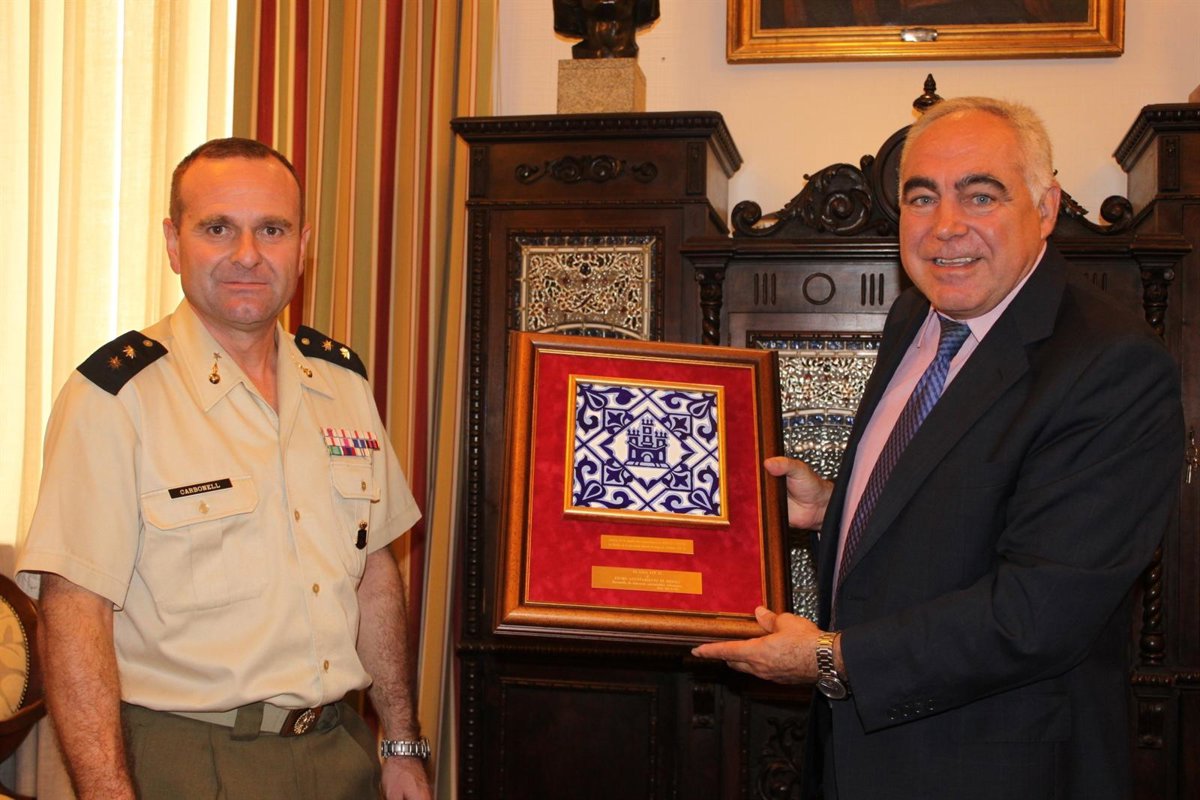 A su vez, el teniente coronel José Luis Carbonell le ha entregado a Pedro Acedo una metopa con un azulejo de la capilla del que fue cuartel Hernán Cortés.