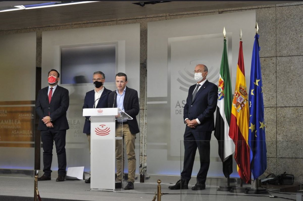 Los senadores autonómicos Rafael Lemus y José Antonio Monago, en rueda de prensa son los alcaldes de Don Benito y Villanueva de la Serena - ASAMBLEA DE EXTREMADURA