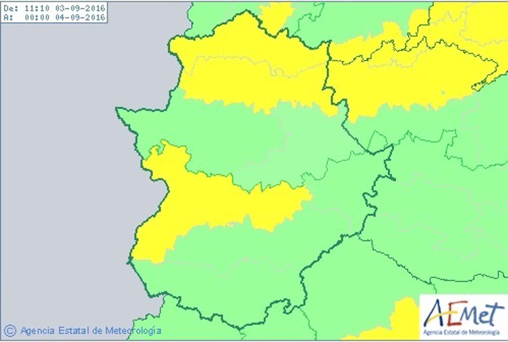 En concreto, este sábado se activarán los avisos por riesgo de altas temperaturas en entre las 15,00 y las 21,00 horas por temperaturas de 38 grados en las Vegas del Guadiana y en Tajo y Alagón, y de 36 grados en el Norte de Cáceres.