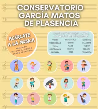 El Conservatorio Profesional de Música García Matos de Plasencia, dependiente de la Diputación de Cáceres, ha abierto ya el plazo de inscripción para el curso 2023/2024, y lo hace bajo el lema 'Acércate a la música'.