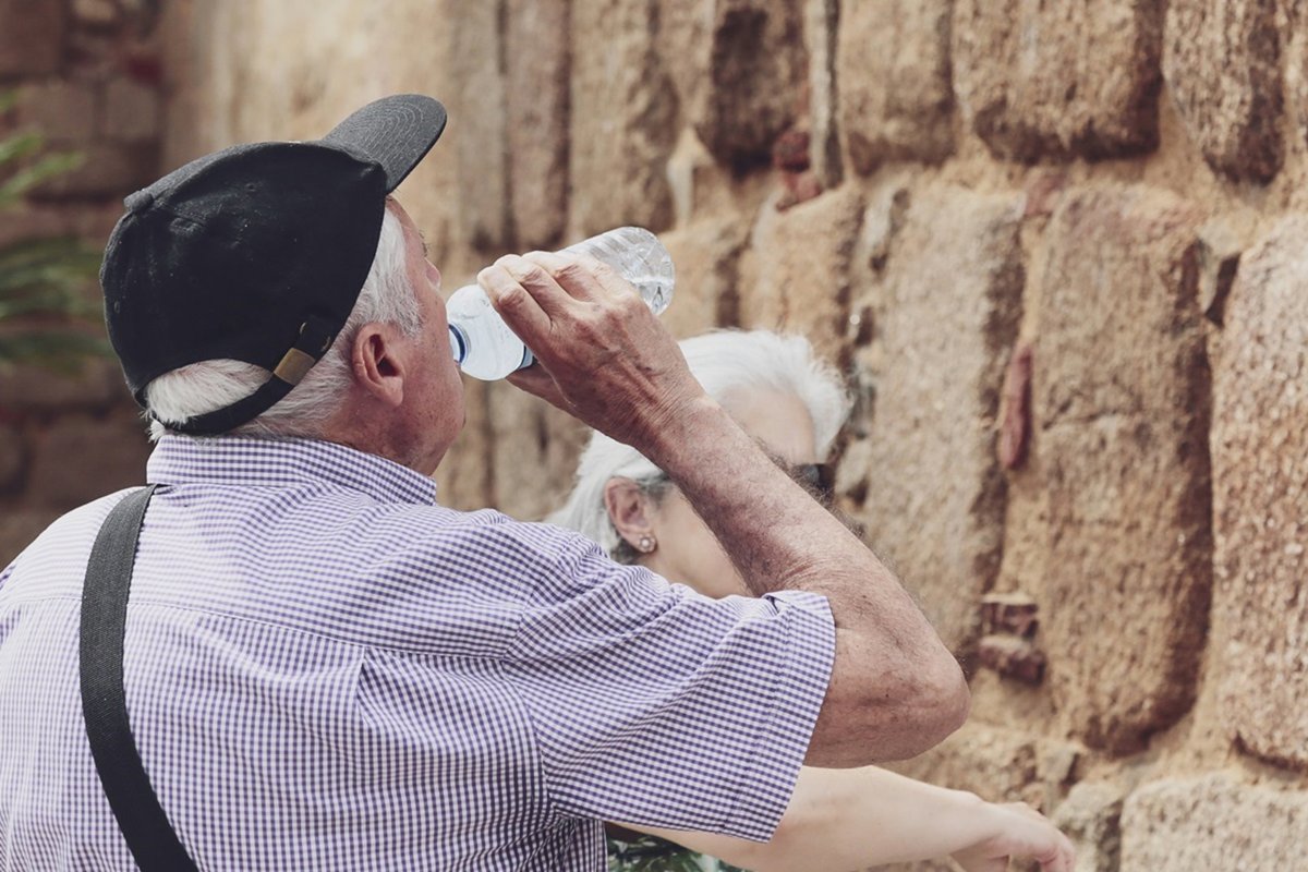 Archivo - Un hombre mayor bebe agua de una botella en un día de intenso calor. - AYUNTAMIENTO DE MÉRIDA - Archivo
