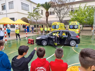 En estos simulacros, DYA mostró a más de 150 alumnos del centro las técnicas que los sanitarios realizan para extricar a un paciente de un vehículo accidentado, cómo realizan la retirada de un casco a un motorista o como inmovilizan un miembro fracturado, entre otras actuaciones.