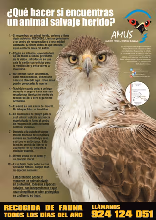 La ong AMUS ha lanzado en Extremadura una campaña informativa para que los ciudadanos sepan cómo actuar ante el hallazgo de animales salvajes heridos o con necesidades.
