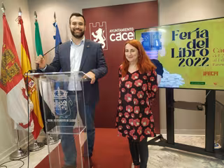El alcalde de Cáceres, Luis Salaya, y la concejala de Cultura, Fernanda Valdés, en la presentación de la XXII Feria del Libro - EUROPA PRESS