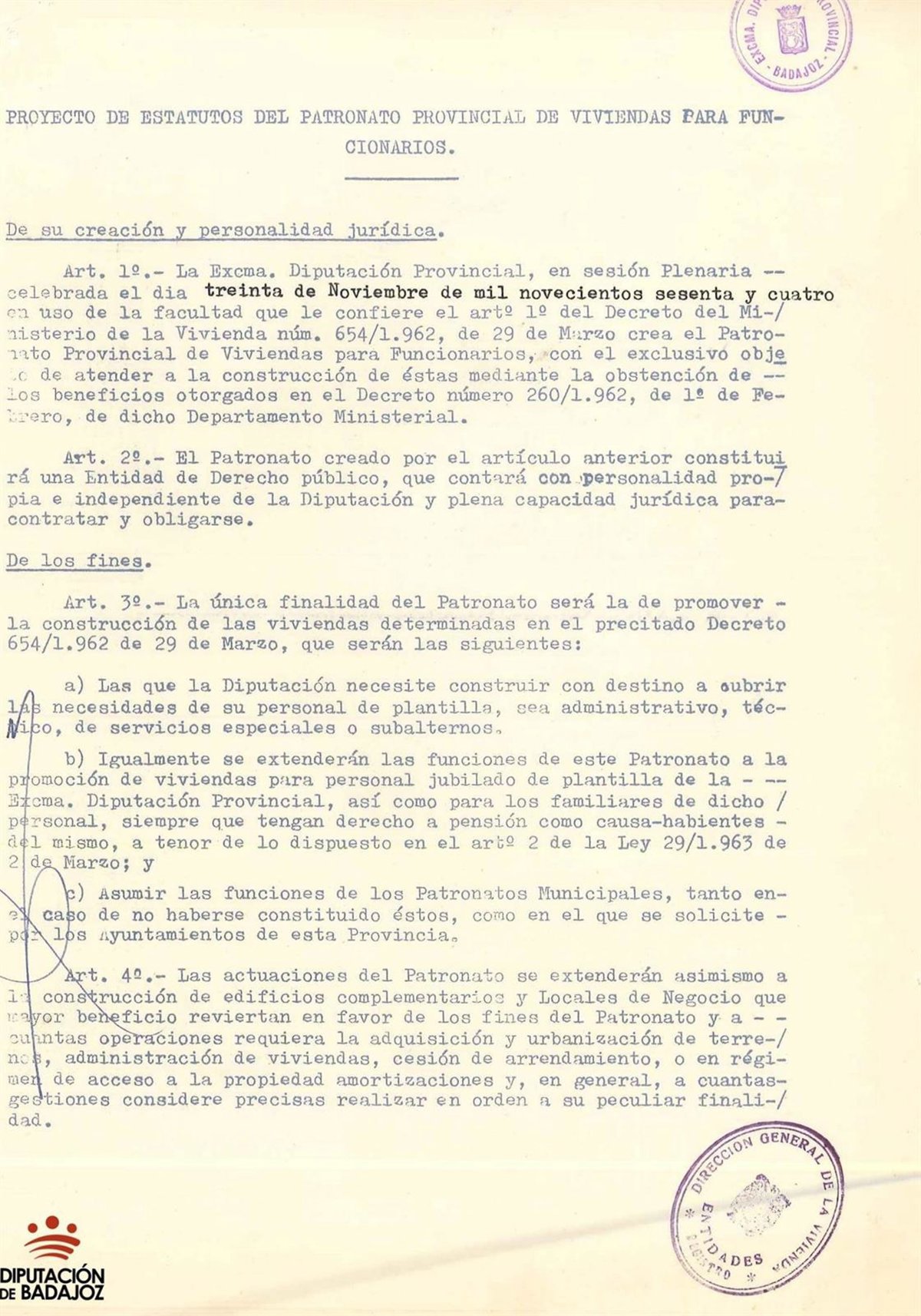 El Archivo Provincial de la Diputación de Badajoz dedicará el mes de febrero al fondo del Patronato de Viviendas para funcionarios, con el que dará a conocer la labor de la institución en el fomento de la vivienda protegida y la atención social de sus empleados.